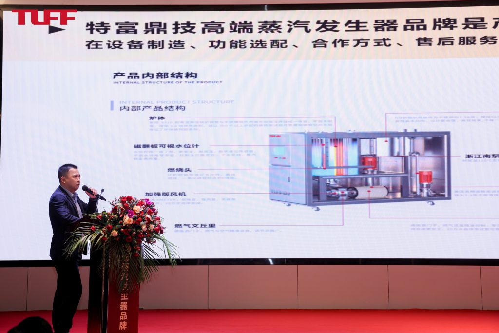 特富董事會成員王紅峻在發言中指出,特富鼎技代表了特富發展在蒸汽發生器細分市場的深入探索與創新表達。在綠色制造和節能環保的要求下,蒸汽發生器對各行業的貢獻愈發重要。特富鼎技致力于通過多樣化的產品和解決方案,為客戶提供高效、智能、綠色的蒸汽服務。